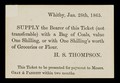 Supply the bearer of this ticket (not transferable) with a bag of coals, value one shilling, or with one shilling's worth of groceries or flour / H.S. Thompson.