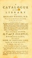 A catalogue of the library of Richard Wright. Consisting of an elegant and extensive collection of books in every branch of learning; particularly, in history, physic, criticism, divinity, and the Greek and Roman classics, many of the scarcest editions of the old English poets, novels and romances, also a most singular assemblage of theatrical writers, including the rarest productions of the English drama: which will be sold by auction, by T. and J. Egerton.