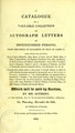 A catalogue of a valuable collection of autograph letters of distinguished persons from the reign of Elizabeth to that of James II ... which will be sold by auction by Mr Sotheby ... on Thursday, December the 16th at twelve o'clock.