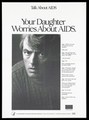 A man looks looks directly out at the viewer with an interview about how talk to your children about AIDS; advertisement by the U.S. Department of Health and Human Services. Lithograph, 1991.