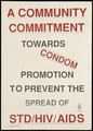 A message about community commitment towards condoms and safe sex to prevent AIDS; an advertisement by the National AIDS Control Program, Ministry of Health, Zimbabwe. Colour lithograph by Visual Graphics, ca. 1995.