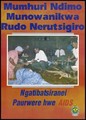 Two people tending a man sick with AIDS as a woman stirs a pot on a stove to the right; an advertisement for compassionate care for those families affected by AIDS by the Ministry of Health, Zimbabwe (Shona version). Colour lithograph, ca. 1995.