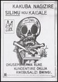 A skull and bones on a grave next to a small picture top left of a couple holding hands, a reminder that AIDS can cause death by the AIDS Control Programme, Ministry of Health, Uganda. Lithograph, ca. 1990's.