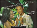 A couple hold up condoms representing a safe sex and AIDS prevention advertisement by the Comité de Prévention et de Contrôle du SIDA en Martinique. Colour lithograph by Patrick Josse, ca. 1995.