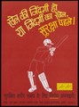 A cricketer raising his bat as if to defeat AIDS representing an advertisement for Nirodh condoms ; a safe-sex advertisement. Colour lithograph, ca. 1999.