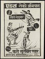 A batsman, a fielder and a bowler and three cricket balls representing the fight against AIDS; an AIDS prevention advertisement by Bharat Press. Lithograph, ca. 1997.
