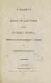 Syllabus or heads of lectures on the materia medica : delivered in the University of Pennsylvania / by John Syng Dorsey, M.D.