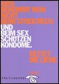 An angry looking face attempts to escape from the middle of the green silhouette of a man shouting "AIDS mich nicht an!" (AIDS won't get me!); a yellow illustration of a male and female running against a cityscape appears repeatedly across the background; an advertisement for a mobile Theatre Project in support of AIDS on behalf of the Ministry of Labor, Düsseldorf. Colour lithograph.