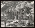 Heavy erecting shop, Davy & United Engineering Co. Ltd., Park Iron Works, Sheffield: a view of a large reversing blooming mill under construction, surrounded by machines and cranes. Photograph, 1957.