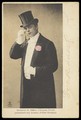 Thomasset, an actor in drag, poses wearing a large hat. Photographic postcard, 190-.