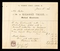 Dr. to Richard Trood, medical electrician : 78, Wigmore Street, London, W.