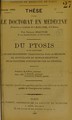 Du ptosis et en particulieur de son traitement chirurgical par la méthode de suppléance du muscle releveur de la paupière supériere par le frontal : thèse pour le doctorat en médecine / par René-François-Fréjus Comte-Lagauterie.