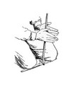 M0005543: Illustration of a fire making method using a fire saw, after the Burmese and Malay method