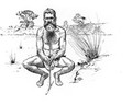 M0005570: Illustration of a Chimila person using a hand drill to create fire, north Columbia