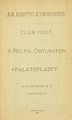An aseptic atmosphere; club foot; A rectal obturator; Palatoplasty.