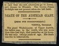 [Newspaper cutting (The Globe, 26 August 1887) about the "Death of the Austrian giant" "Winkelmeyer" (Franz Winkelmeier) in Vienna from tuberculosis].