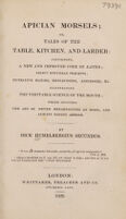 Apician morsels; or, tales of the table, kitchen, and larder. Containg a new and improved code of eatics; select epicurean precepts; nutritive maxims, reflections, anecdotes, &c. ... / By Dick Humelbergius Secundus.