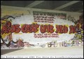 A brick wall bearing graffiti in English and Spanish about AIDS and bottles of bleach with a billboard advertising the AIDS Information Line; advertisement by the Colorado Department of Health, Denver AIDS Prevention and Project Safe. Graffiti by Zoom One and Vince Manolo. Colour lithograph by Julee Wilets, 1989.