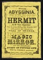 [Leaflet advertising appearances by "a hermit of 90 years experience" from Abyssinia and a "magic mirror" in which "one remarkable event of future life will be visbly produced."].