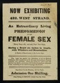 Now exhibiting at 432, West Strand : an extraordinary living phenomenon of the female sex, thirty years old, and only four feet high, having a beard six inches in length, with whiskers and moustachios.