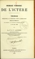 Physiologie pathologique de l'ictère : thèse présentée au concours pour l'agrégation (section de médecine) et soutenue à la Faculté de médecine de Paris le 10 mars 1869 / par J.-V. Laborde.