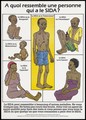 Six ill people in Uganda, with either AIDS or another disease; representing the difficulty of being sure that someone has AIDS (French version). Colour lithograph, ca. 1995 (?).