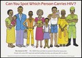 A group of men, women and children representing the difficulty in spotting who carries the HIV virus. Colour lithograph, ca. 1995 (?).