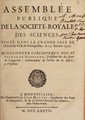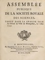 Assemblée publique de la Société Royale des Sciences, tenue dans la grande sale [sic] de l'Ho̊tel-de-Ville de Montpellier, le 8 mai 1749.