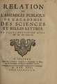 Relation de l'Assemblée publique de l'Académie des sciences et belles lettres du jeudy douziesme avril mil sept cent trente-un.
