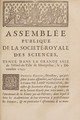 Assemblée publique de la Societé royale des sciences : tenuë dans la sale de l'hôtel-de-ville de Montpellier, le cinquiéme Decembre mil Sept cens neuf.