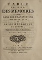 Table des titres des mémoires imprimé dans les Transactions philosophiques de la Société royale de Londres depuis MDCLXV jusques en MDCCXXXV. / Par M. de Bremond.