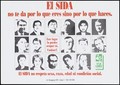 The faces of men and women representing the warning that AIDS does not respect respect sex, race, age or social status; advertisement by Via Libre, Peru. Colour lithograph, ca. 1995.