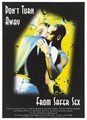 Two men walk down a street with heads together in an image pixelated at the edge; an advertisement for the Terrence Higgins Trust helpline for advice about safe sex in AIDS prevention. Colour lithograph, 1994.