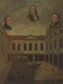 Saint Thomas's Hospital, Southwark: the courtyard, with portraits of Mark Akenside, Richard Mead and William Cheselden. Oil painting.