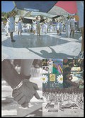 Recto: Men and women dressed in white holding up a section of the 'Patchwork of Names' [AIDS memorial quilt] with a couple holding hands below, further details of people working on the quilt and a view of crowds with the quilt on the ground; verso: text in four blocks referring to the origin of 'Le Patchwork des Nomes' in France and extract quotes from dedications that appear on the quilt. Colour lithograph by Sophie Vinualés.