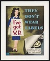 A woman wearing a sandwich-board inscribed "I've got VD", showing the absurdity of the assumption that a woman would not pass on a venereal infection to an American sailor. Colour lithograph, 1948.