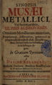 Synopsis musæi metallici viri incompatabilis, Ulyssis Aldrovandi. Omnium metallorum materiam, proprietates, differentias, generandi & præparandi rationem & usum succinctè tradens, innexis variis curiositatibus, scitu lectuque dignis / In gratiam tyronum edita â Davide Kellnero.
