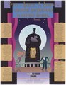 A naked woman and a suited man reach towards a condom packet as a man dressed in a long black cloak and hat holding a cat looms up behind with the moon beyond; a safe sex and anti-AIDS advertisement by Infoshare International. Colour lithograph, 1995.