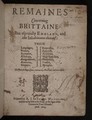 Remaines concerning Brittaine: but especially England, and the inhabitants thereof. Their languages, names, syrnames, allusions, anagrammes, armories, moneys. Empresses, apparell, artillerie, wise speeches, prouerbes, poesies, epitaphs / [William Camden].