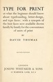 Type for print, or, What the beginner should know about typefounding, letter-design and type faces, with a synopsis of the best faces now available shown family by family for the convenience of users of print / by David Thomas.