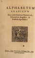 Alphabetum Arabicum unà cum oratione Dominicali, salutatione angelica, et simbolo apostolico.