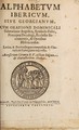 Alphabetum Hebraicum addito Samaritano et rabbinico cum oratione Dominicali, salutatione angelica, et symbolo apostolicio.