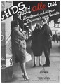 A man walks arm in arm with a woman while looking back at a prostitute in a check coat; representing the need for prostitutes to use condoms to prevent AIDS. Colour lithograph after Ullstein Bilderdienst for Hydra, 199-.