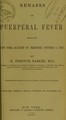 Remarks on puerperal fever : before the New York Academy of Medicine, October 6, 1858 / by Fordyce Barker and A.K. Gardner.