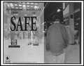 A man cruising at the Gare Centrale in Brussels; an advertisement for safe sex in AIDS prevention. Lithograph by Bart Verhaegen for Aide Info Sida, ca. 1996.