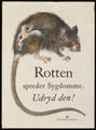 A diseased rat with scabs and blood, and a long tail; campaign against rats in Denmark. Colour lithograph, 194-(?).