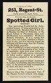 251, Regent-St. nearly opposite the Argyll Rooms : to be seen daily, the beautiful Spotted Girl ... Miss Fabian is most curiously spotted ...