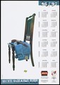 A pair of jeans and a belt slung over the seat of a wooden chair with a yellow condom on the floor representing an AIDS prevention calendar for the year 1996 and 1997. Colour lithograph, 1996.