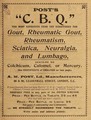 Post's "C.B.Q." : the most effective cure yet discovered for gout, rheumatic gout, rheumatism, sciatica, neuralgia, and lumbago contains no colchicum, calomel, or mercury / A.M. Post Ld.