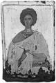 M0005435: Saint Pantaleon holding book and pen / M0005435EB: People worshipping at an outdoor church or shrine